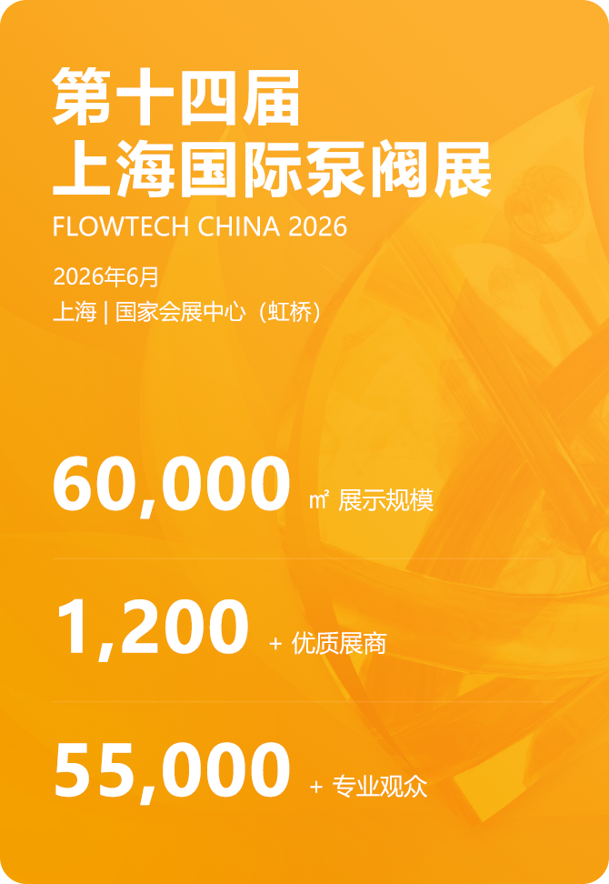 第十四屆上海國際泵管閥展覽會(簡稱:上海國際泵閥展)將于2026年6月在上海國家會展中心(虹橋)隆重開幕!