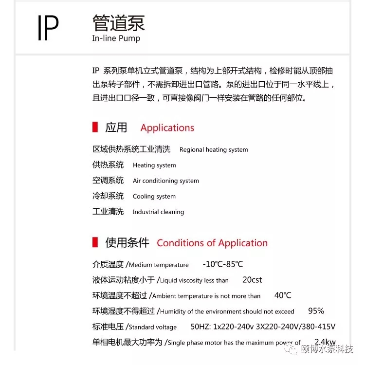 頤博是一家以“創國際一流品質、樹國際一流品牌”為目標的中德合資集水泵及水泵系統研發、設計、制造、銷售、服務一體化企業。我們以“讓生活更舒適、讓你我更美好”為使命,以“誠信、一家親;創新、可持續”為核心價值觀,以“德國嚴謹、中國速度”為特點竭誠為我們的客戶和伙伴提供全面周到的服務。 頤博品牌核心注重以人為本,生活與產品的和諧。因此,我們基于客戶的感受和體驗出發,致力于為客戶提供全系列智能水泵和水泵系統。主要產品:ip管道泵、pl微型管道泵、pe微型端吸泵、pq屏蔽泵、ps自吸泵、hm(l)臥式多級泵、vm(l)立式多級泵、wp潛水泵、dw深井泵、spf智能污水提升泵(泵站)、智能供水設備、雨水利用及噴淋設備、深井智能供水設備、 及水泵智能控制系統。產品廣泛用于家用、商用、及工業領域的暖通空調系統、供水系統、排水系統。 我們會將水按照需求,高效的、環境友好的、便利的輸送到需要的地方。