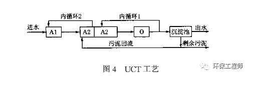 uct 工藝另辟蹊徑, 把常規 a2/ o 工藝的缺氧區分為前后兩個部分( 如圖 4) 。內循環 1 將硝化液從好氧區( o) 回流至缺氧區( a2) , 內循環2將a2區前部的混合液循環至a1區, 回流污泥不是直接進入a1區, 而是先進入a2區前部。這種作法實際上是劃出一個小的缺氧區專門消耗回流污泥中的硝酸鹽, 故避免了回流污泥中的硝酸鹽對厭氧區的沖擊,改善了聚磷菌的釋磷環境。但是, 進入a2區前部的回流污泥實際上只有一小部分由內循環2運至a1區, 其余大部分未經釋磷直接進入后續工藝。也就是說, 在所排除的剩余污泥中只有一小部分經歷了完整的釋磷、吸磷全過程, 其實際除磷效果可能因此而大受影響。常規a2/o工藝實際上也存在類似缺陷。