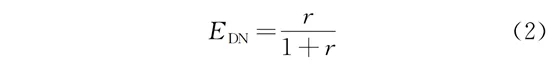 生物池內回流比大小直接決定脫氮效率。在假設生物硝化及反硝化效率均為100%的前提下,脫氮效率隨著內回流比的增大而增大,脫氮效率edn計算見式(2):
