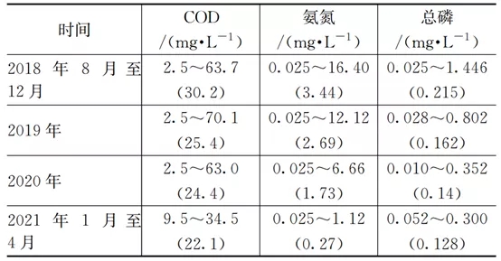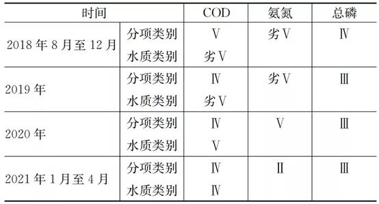 練江流域新一輪的整治工作重點(diǎn)中,加強(qiáng)污水處理產(chǎn)及配套管網(wǎng)的建設(shè)以擴(kuò)大污水收集能力及處理能力,配合河道清理、清淤及垃圾處置,流域水質(zhì)不斷改善。海門灣橋閘斷面2018年至2021年的水質(zhì)監(jiān)測(cè)數(shù)據(jù)見(jiàn)表1和表2。