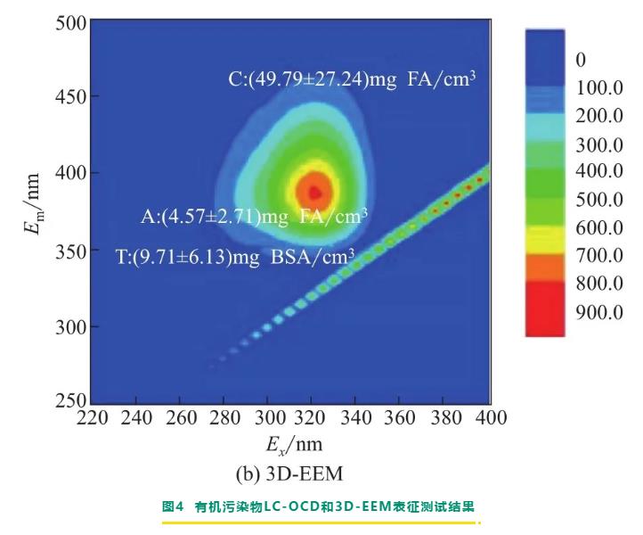 除了污染物和污染膜的表征外,水樣分析結(jié)果也可以對有機污染類型作出診斷。jeong等對用于海水淡化運行8年的反滲透膜元件進行了剖檢分析,剖檢對象選擇的是三種不同位置的膜元件,分別位于一級反滲透系統(tǒng)的前部、中部和后部。污染膜的表面可以看到有一層均勻的褐色沉積物,濃水側(cè)隔網(wǎng)和進水側(cè)污染較重,產(chǎn)水側(cè)附近污染最輕。由lc-ocd和3d-eem表征的水樣測試結(jié)果(圖4)分析可得,膜的有機污染物主要是腐殖質(zhì)物質(zhì)和小分子中性物質(zhì)。tang等對用于城市污水回用處理運行2個月的反滲透膜元件進行了剖檢分析,該元件位于一段反滲透系統(tǒng),通過loi、ftir、doc、eem、樹脂分離等分析,得出膜污染物大部分是含不飽和碳或芳香環(huán)的微生物類和腐殖質(zhì)類有機污染。許家晟等對用于自來水廠出水深度處理的碟管式納濾膜進行了膜污染分析,從膜表面可明顯看到一層較滑膩的黃色污泥層,并伴有黑色顆粒物質(zhì),且底部出水端膜片污染更嚴重。通過sem-eds分析得出,膜污染物以有機污染為主,經(jīng)ftir和3d-eem進一步分析得出,膜表面的有機污染成分主要是類富里酸物質(zhì)、類腐殖酸物質(zhì)及一些微生物代謝產(chǎn)物,并存在一定程度的生物污染。